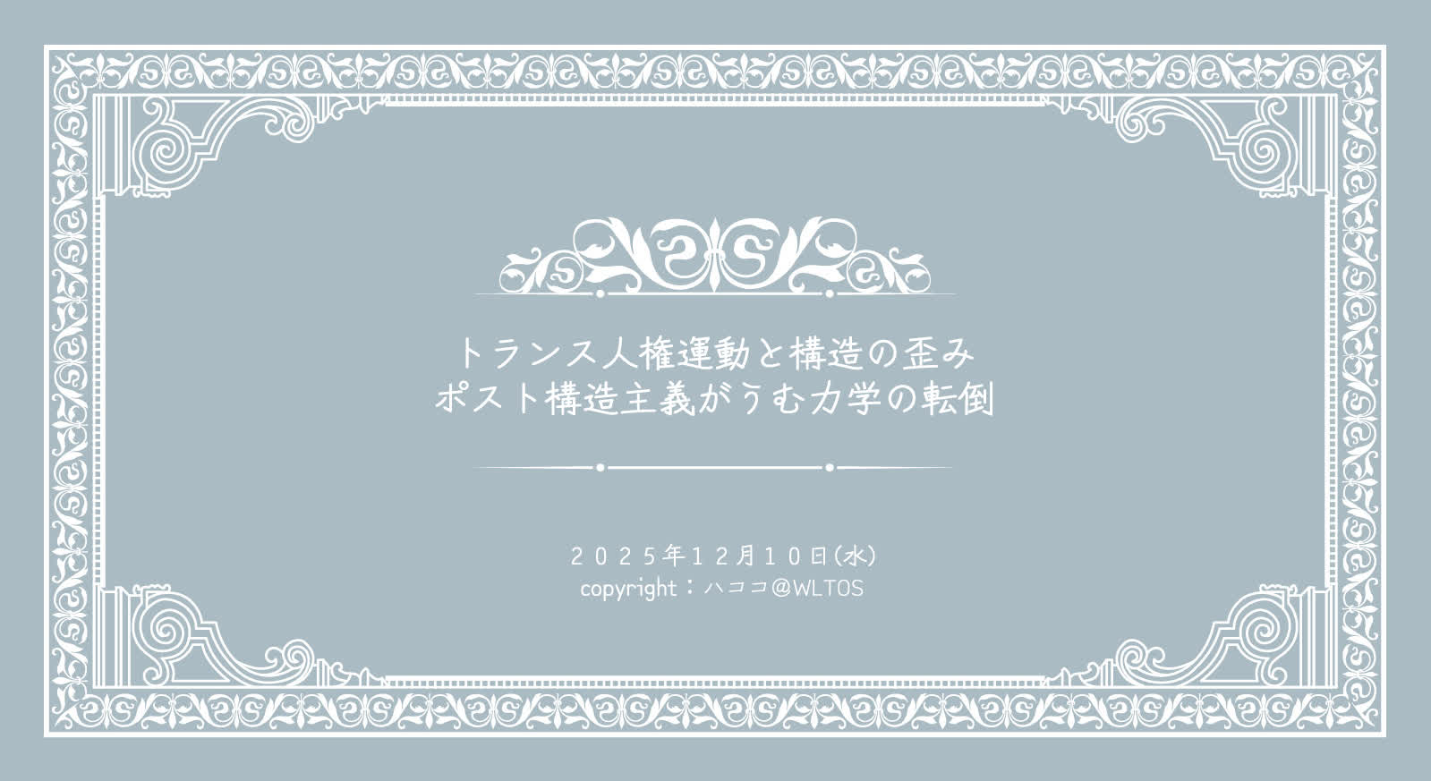 ジェンダーにのみポスト構造主義を適用する恣意的な選択は、その運動の起点である哲学の中で否定されることを、運動の渦中にある者たちは知らないのだろう。